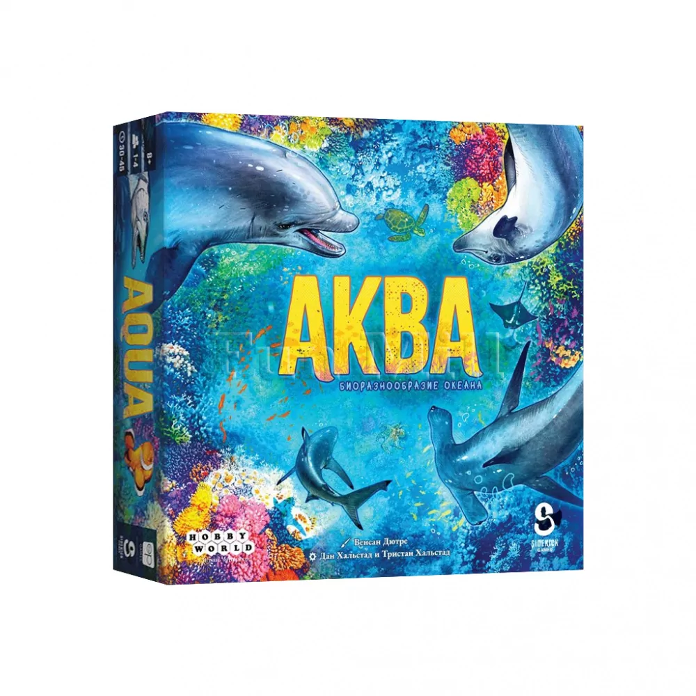«Аква» – абстрактная семейная головоломка, в которой игроки создают на своём планшете колонии кораллов и стараются привлечь как можно больше морских животных разных размеров. Вам предстоит продумывать, как состыковывать тайлы кораллов, чтобы запускать цепочки подсчёта очков и «зазывать» к себе рыб, черепах и других обитателей глубин.
