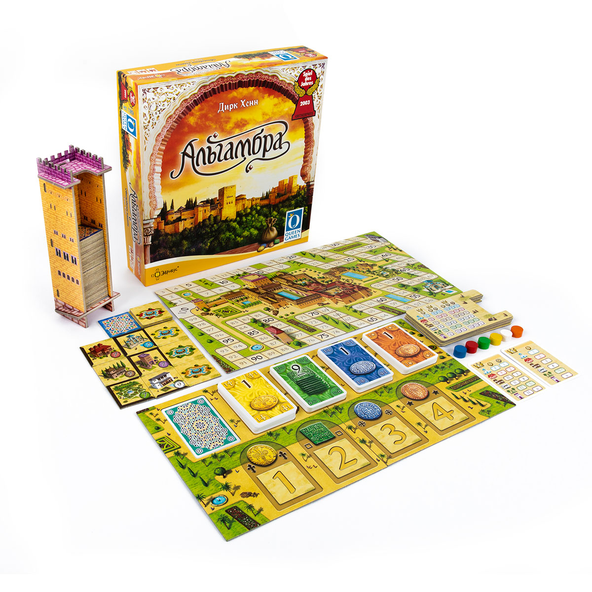 «Альгамбра» — классическая семейная настольная игра, в которой вы строите собственный дворцово‑парковый комплекс в духе знаменитой Альгамбры в Гранаде. Вы нанимаете строителей со всего света, платите им в их родной валюте и выкладываете пластины зданий так, чтобы создать красивый и выгодный с точки зрения очков дворец.