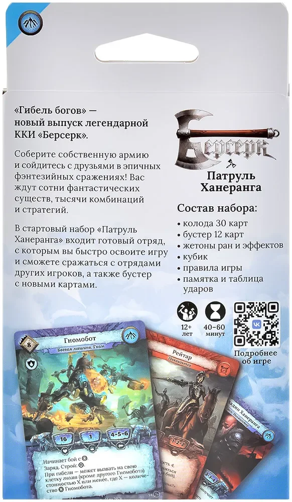 Набор относится к категории «Начинающим игрокам» и фактически является удобной точкой входа в игру. Оригинальный «Берсерк» вышел в 2003 году и с тех пор многократно обновлялся, сохранив узнаваемый стиль и тактическую глубину. В «Гибели богов» переработано множество старых карт, улучшен баланс, обновлено оформление и переосмыслены ключевые концепции, так что ветераны легко вернутся в игру, а новички без труда освоят правила с нуля.