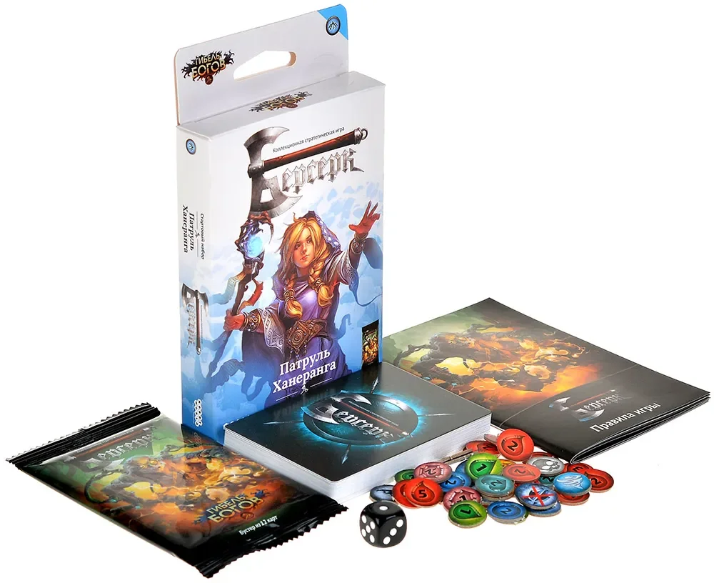 «Берсерк. Гибель богов. Стартовый набор “Патруль Ханеранга”» — готовая колода для сета «Гибель богов», с которой удобно начинать путь в обновлённом «Берсерке» или возвращаться в игру после перерыва. Сюжетно набор продолжает большую историю о Молоте времени: части легендарного артефакта собраны, но даже могущественный Хигарт и гномьи кузнецы не в силах сковать оружие, способное низвергнуть Ложных богов. Последняя надежда мира — гениальный, но непредсказуемый изобретатель Крэм и таинственное Братство огня, а богам, разумеется, известно о планах Хранителей, и они готовы сделать всё, чтобы помешать им.