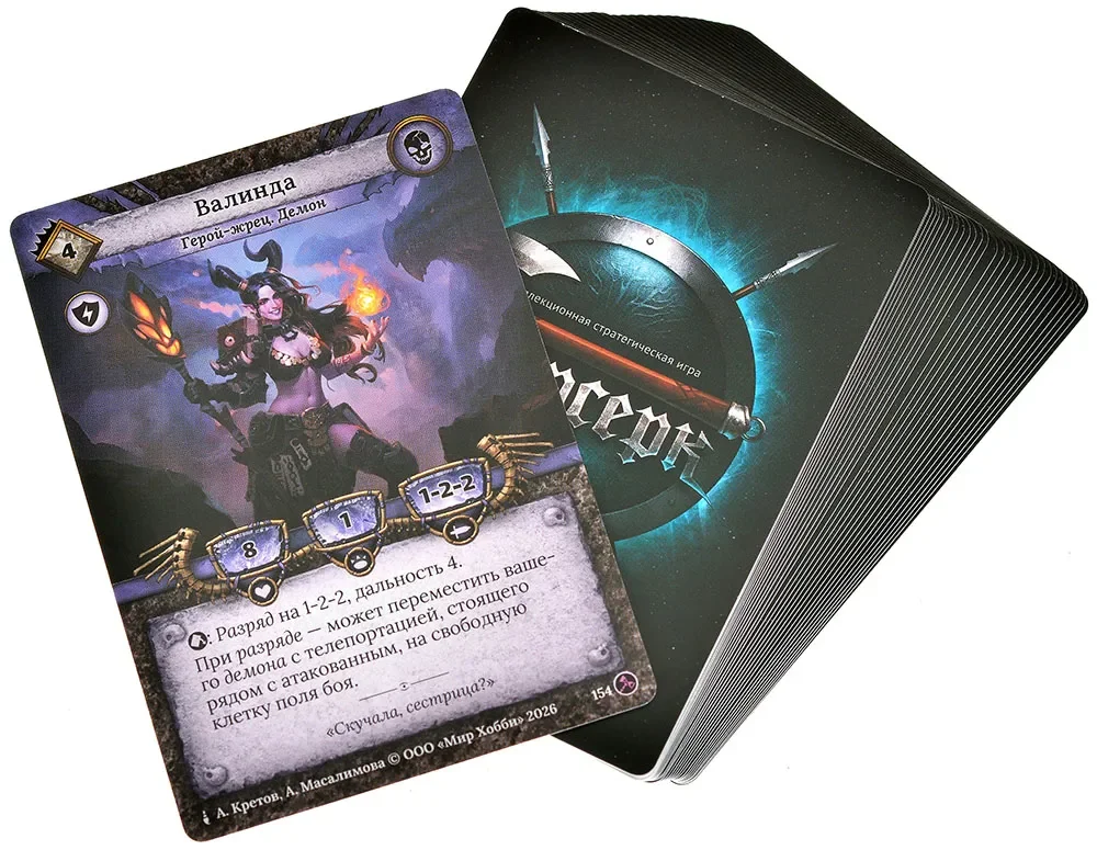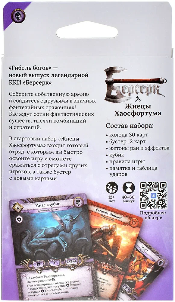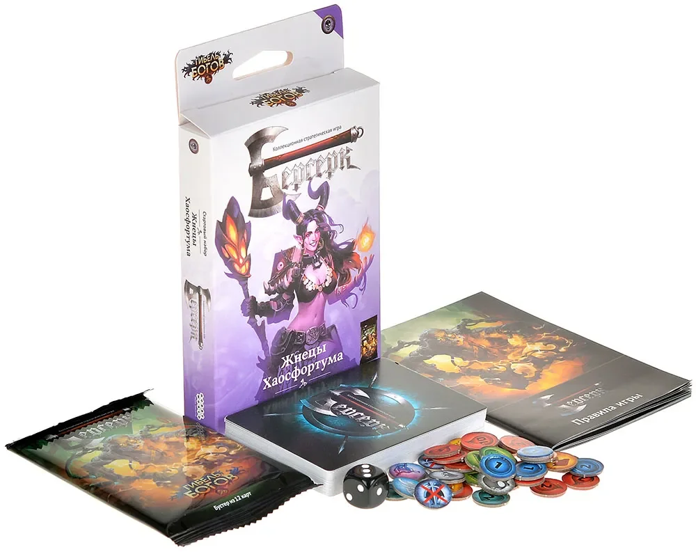 «Жнецы Хаосфортума» включают полностью готовую к игре колоду из 30 карт. Это означает, что вы можете просто открыть коробку, перемешать колоду и сразу выходить на поле, не разбираясь в декбилдинге. Карты подобраны так, чтобы показать особенности сета «Гибель богов» и дать отряду узнаваемый, цельный игровой стиль, подходящий как для первых партий, так и для дальнейшей доработки с помощью бустеров.
