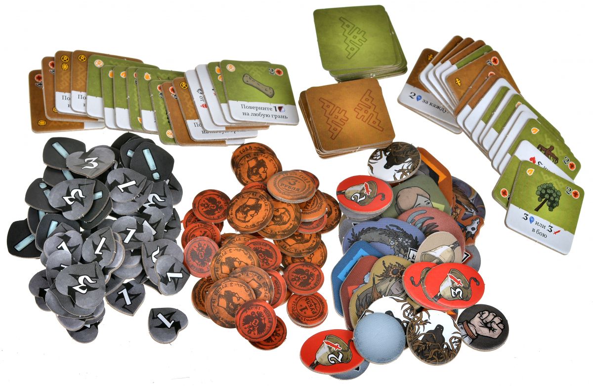 - Планшеты, счётчики грехов, жетоны, стенды и другие компоненты для 4 персонажей