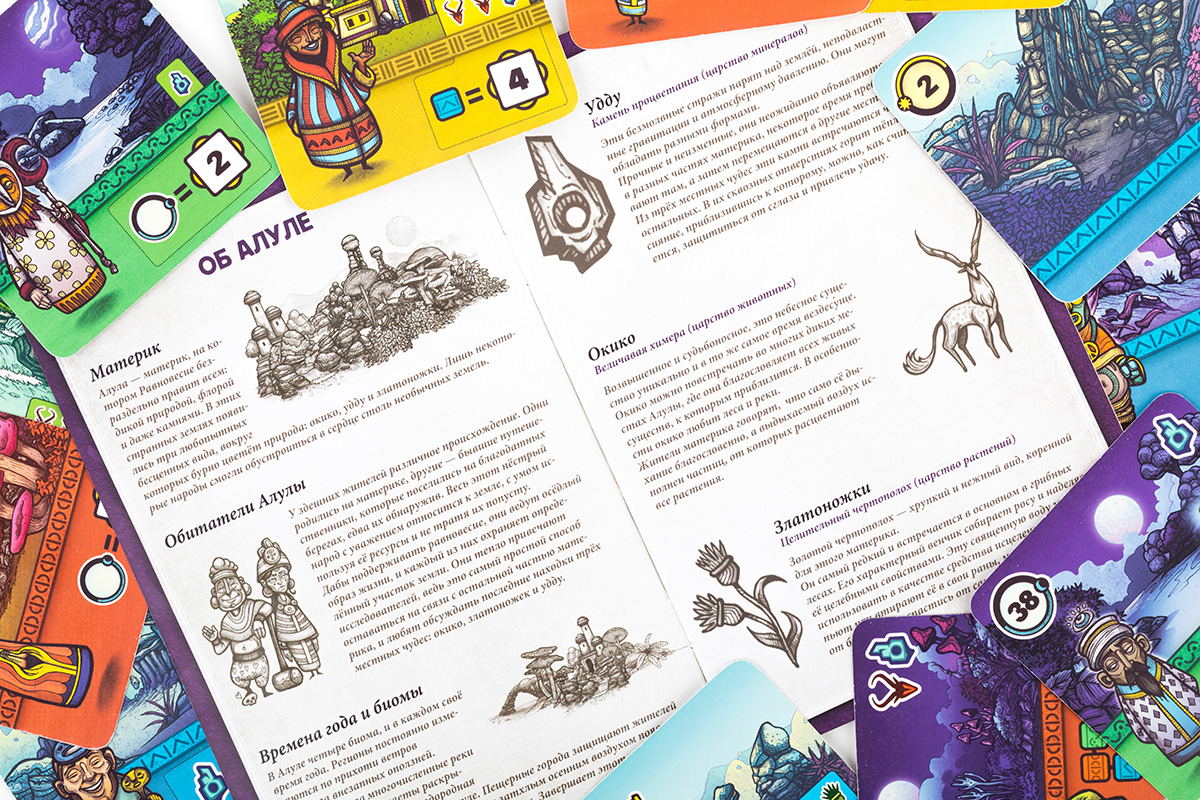Все игроки одновременно выбирают одну карту из руки и кладут её перед собой лицевой стороной вниз. Затем они одновременно раскрывают выбранные ими карты и добавляют их в свои игровые области, справа от карты, сыгранной ими в предыдущем раунде. На картах региона вам встретятся местные жители, которые дадут вам задания на поиск определённых ресурсов, выполнение которых принесёт вам очки славы в конце игры.