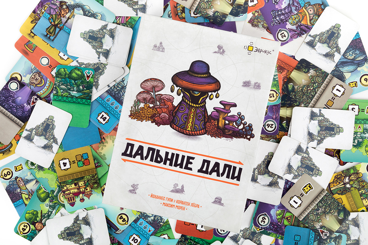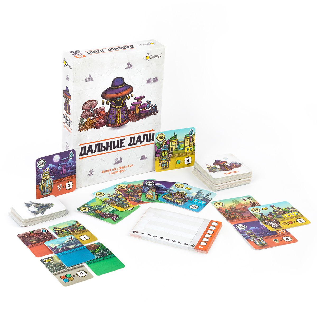 «Дальние дали» — это необычная карточная игра, простая и сложная одновременно. Вы познакомитесь с удивительным континентом Алула, придуманным создателями игры. Вы разыграете перед собой 8 карт, показывающих ваш путь и встреченных вами жителей, которые дают вам задания на поиск определенных ресурсов. Карты вы выкладываете последовательно слева направо, а подсчёт очков в конце игры ведётся справа налево - вы возвращаетесь назад и жители, чьё задание вы выполнили, награждают вас — придётся хорошенько подумать.