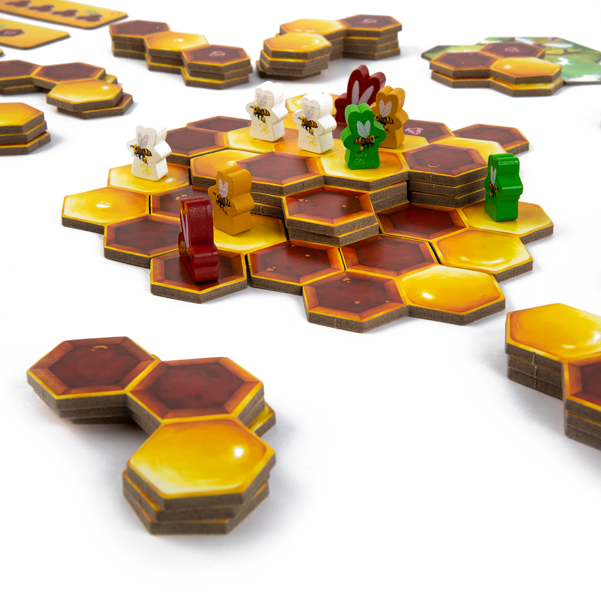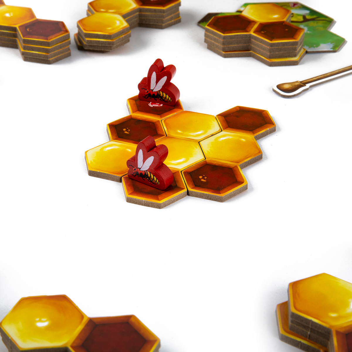 Тайлы содержат разные типы ячеек: обычные соты, места для мёда, клетки с цветами и специальные позиции для шершней. После добавления тайла игрок может разместить своих рабочих пчёл на свободных ячейках, стараясь занять клетки, которые принесут максимальное количество очков к концу партии. Важную роль играют шершни: при определённых условиях игроки могут передвигать их по улью, угрожая чужим рабочим пчёлам и мешая планам соперников.