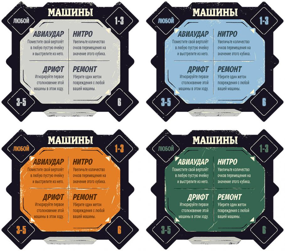 - 4 типа специальных команд: авиаудар, нитро, дрифт и ремонт