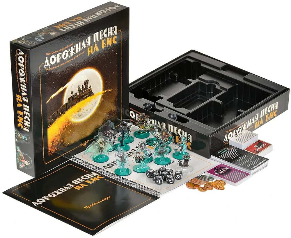 «Дорожная песня: На бис» — крупное дополнение к мрачной кооперативной игре «Дорожная песня», которое позволяет прожить путешествие по Промежутью заново, но с другим смыслом и другой судьбой. Легендарный поезд‑призрак «Серебряный паромщик» вновь собирает скорбные души, и теперь у бродяг появляется ещё один шанс на спасение — или новое падение в бездну отчаяния. Дополнение раскрывает новую полноценную главу кампании «Мост из листьев» и добавляет целый набор модулей, меняющих правила и структуру уже знакомых сценариев.