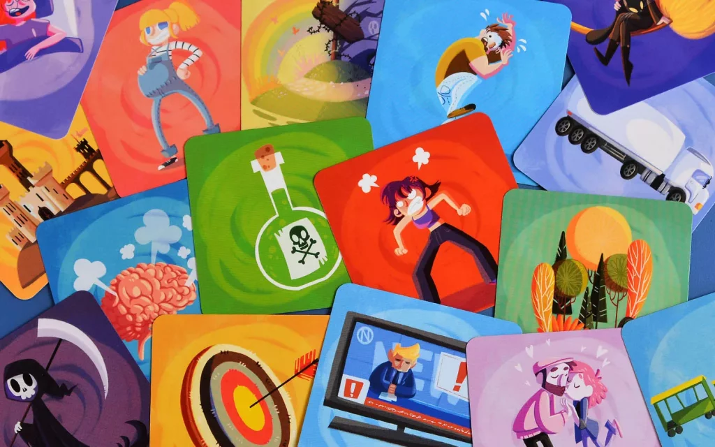 Третий формат – «Вопросы и ответы». У каждого игрока есть личная стопка карт, и участники по очереди задают друг другу вопросы, на которые нужно мгновенно ответить, используя верхнюю карту своей стопки как вдохновение. Можно интерпретировать рисунок буквально или метафорически – главное, чтобы ответ был быстрым и остроумным. Этот режим хорошо раскачивает реакцию и помогает раскрепостить даже стеснительных игроков.
