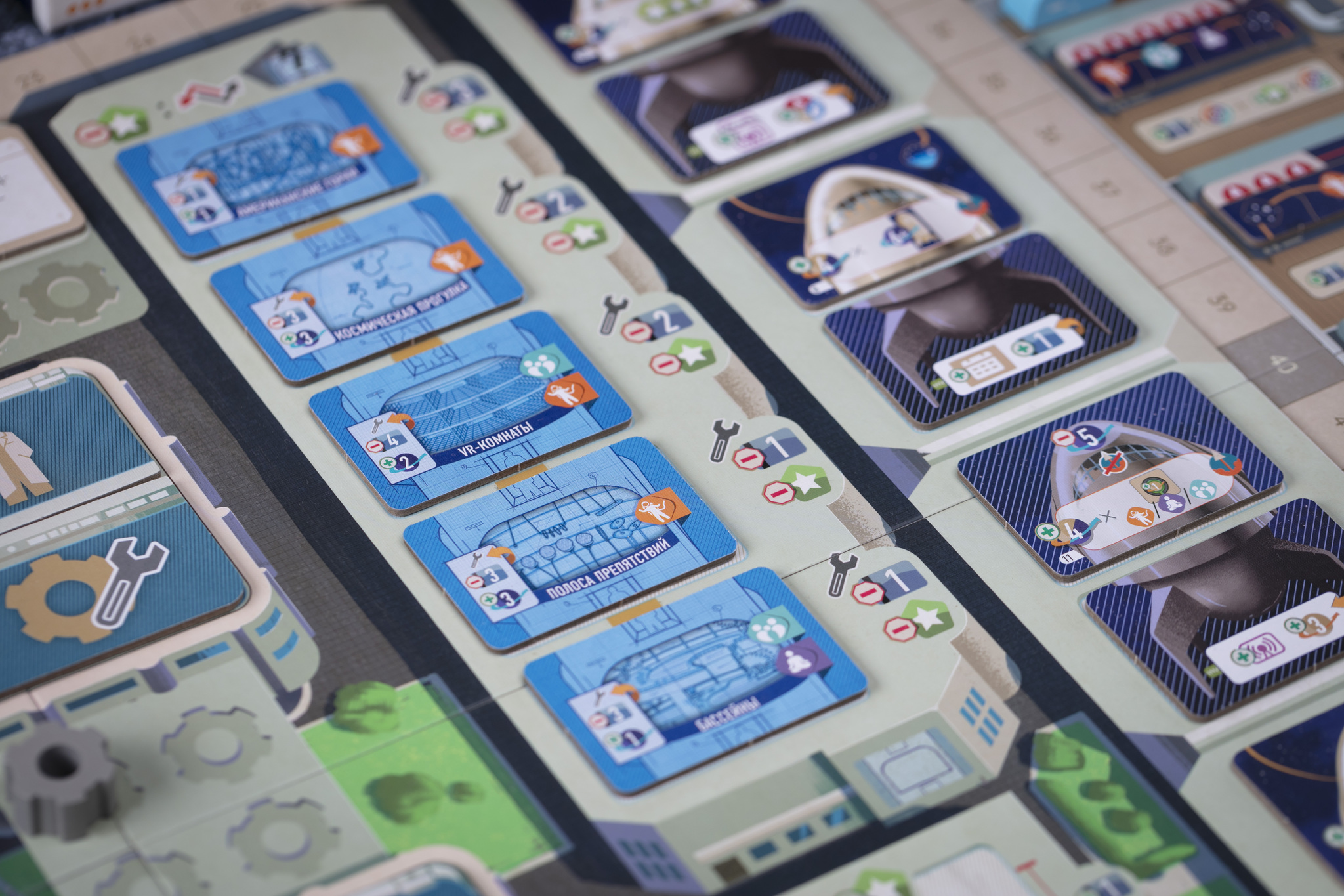 Важная часть игры — установление связей между отделами, где вы выполняете действия. Эти связи делают вас более гибкими: позволяют выполнять действия дешевле и в нужных вам сочетаниях, недоступных с начала игры. Не менее значима динамика рынка ресурсов, который изменяется в зависимости от решений всех игроков.