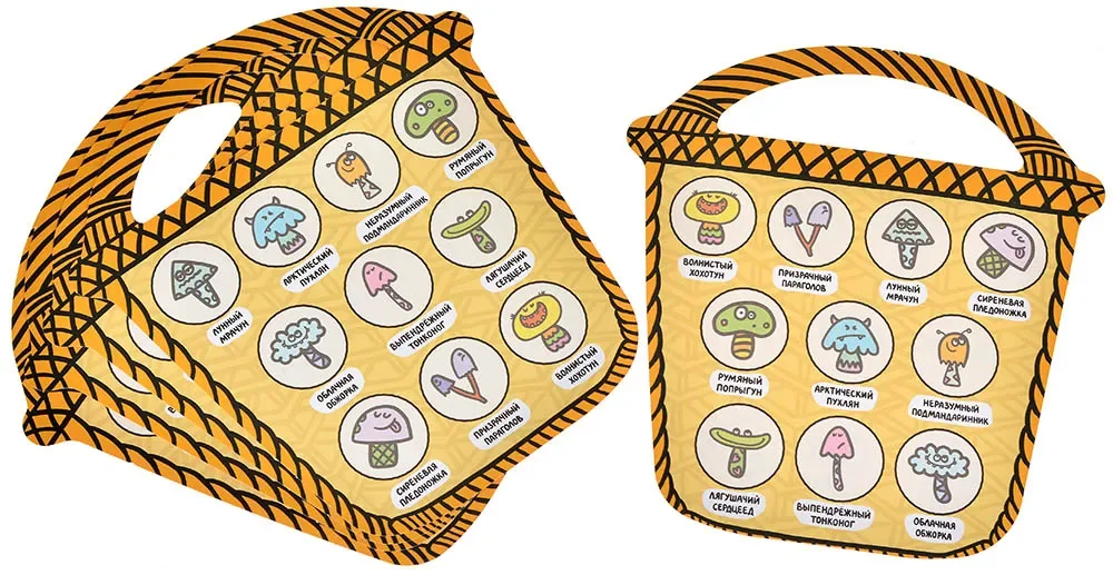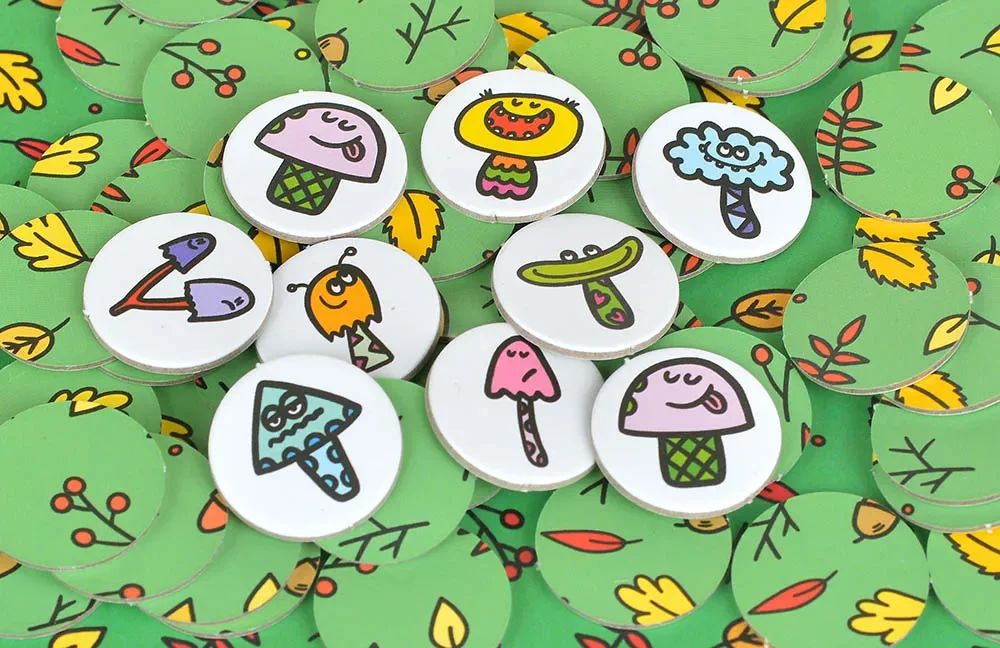 60 жетонов грибов (10 разных видов, по нескольку экземпляров каждого).
