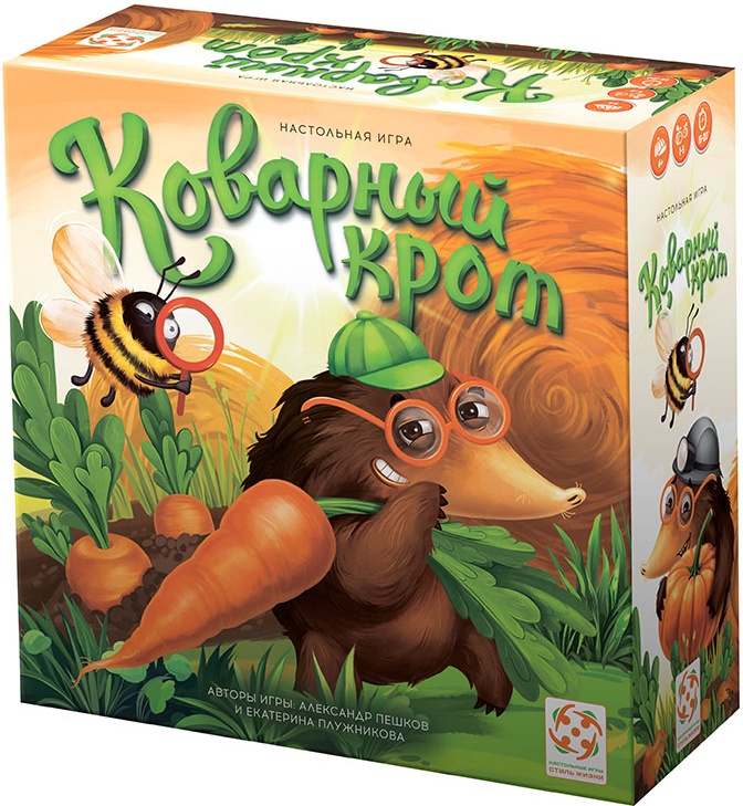 «Коварный крот» — уютная кооперативная игра на дедукцию, где команда садоводов расследует пропажи овощей с грядок. Милые, но проказливые кроты утаскивают морковку и репу, а бдительный шмель подсказывает улики через специальное окошко на планшете. Игра сочетает логику, внимание и командную работу в компактном формате для 1–5 игроков от 6 лет, партии длятся 15–20 минут.
