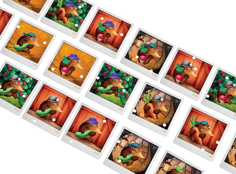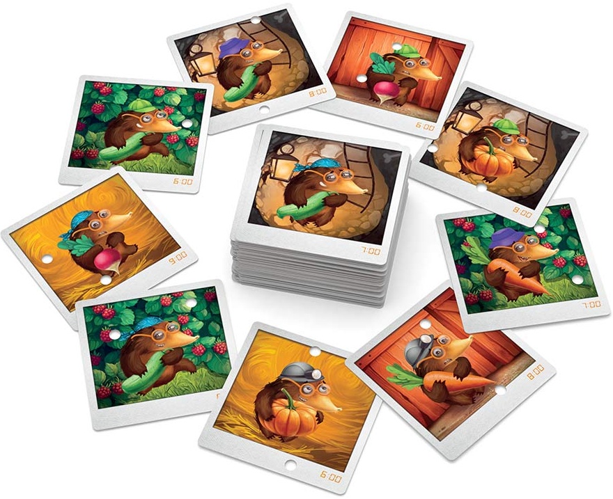 Сюжет разворачивается на солнечном огороде. Кроты прячут урожай в норах, и вам нужно выяснить: какой именно крот виноват, когда он украл, с каким овощем и в какую нору. Каждая партия — новое дело: секретная карта под планшетом хранит правду, а вы методом исключения сужаете круг подозреваемых.