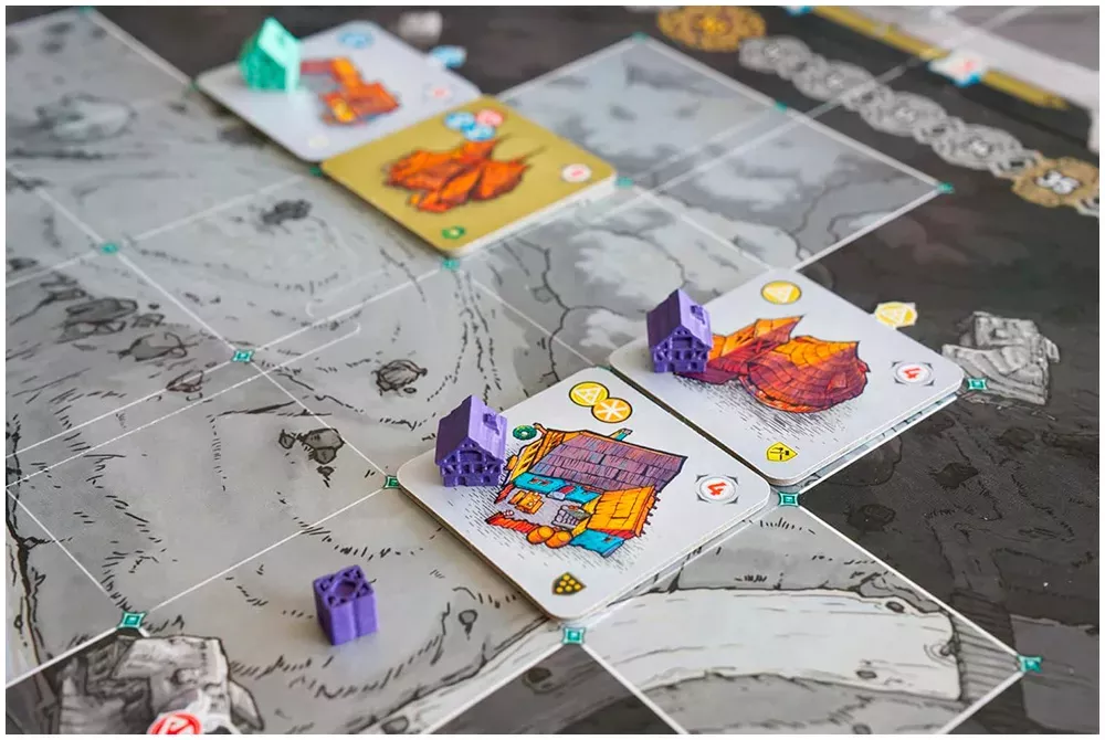 Каждый игрок связан с набором гильдий – асимметричных направлений, вроде горной, ремесленной и строительной. Их возможности и бонусы определяют, какие здания вам выгоднее возводить и какие действия приносят больше пользы, так что уже на старте партии стратегии игроков ощутимо расходятся.