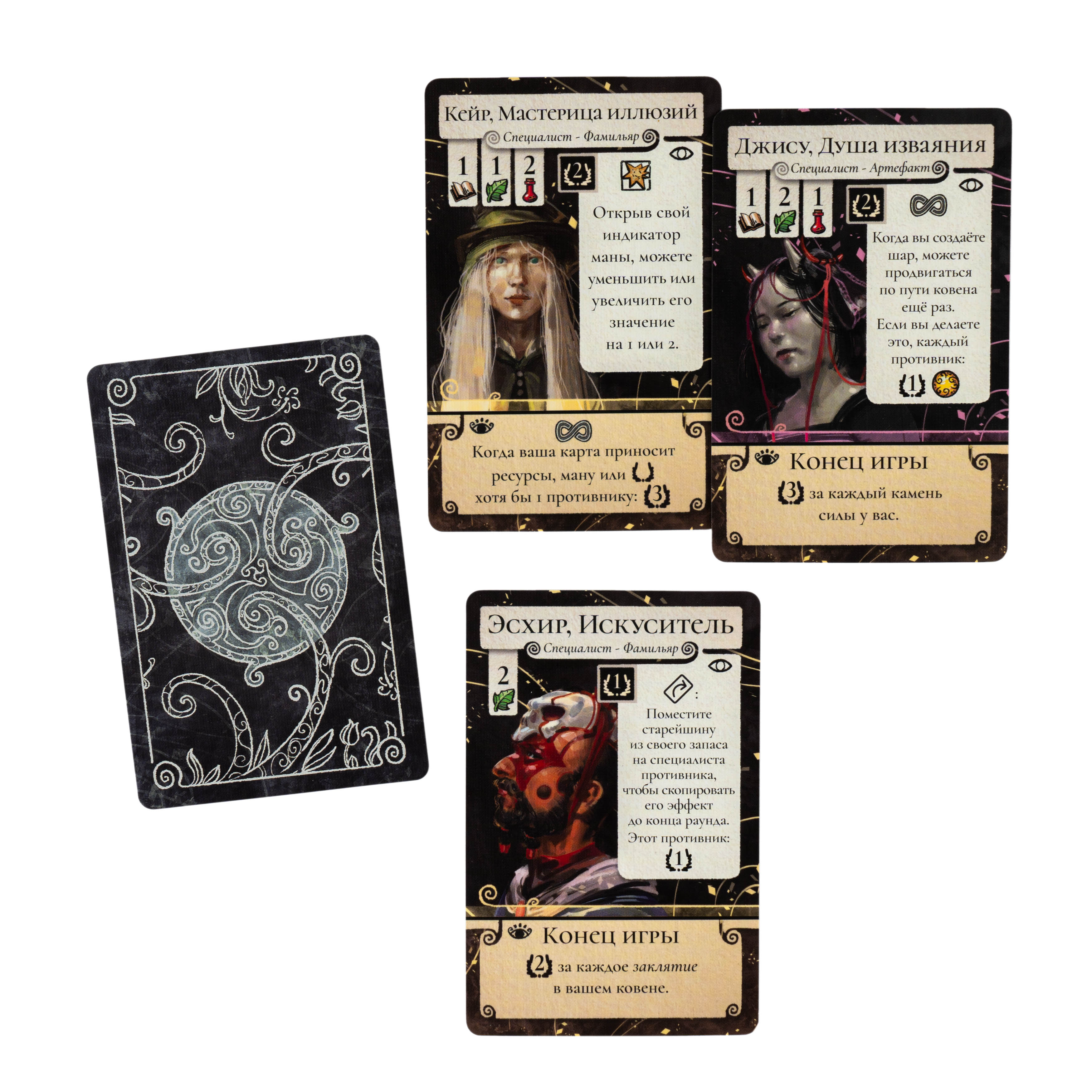 - Высокая реиграбельность — 4 ковена, колода артефактов и скрытые ставки