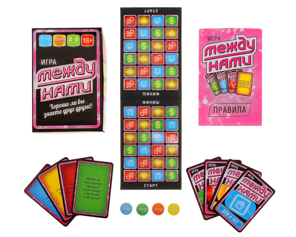 В течение игры вы поочерёдно вытягиваете карточки и отвечаете на личные вопросы, написанные на них (например: Кто в доме хозяин? или Вправе ли мужчина сказать «нет»?). При совпадении ответов передвигайте свои фишки вперёд на клетку, соответствующую цвету карточки.