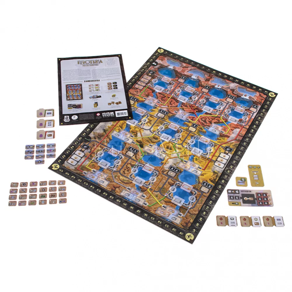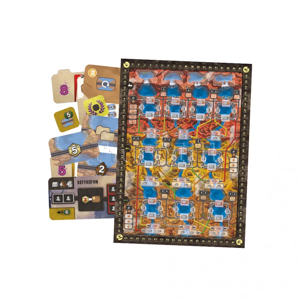 Рабочие посёлки — ещё один важный элемент дополнения. Они размещаются на специальной инфраструктуре вдоль реки и связываются мостами, формируя сеть возможных маршрутов к новым ячейкам действий. Эти области действий располагаются в горах, на холмах и у подножия, и каждая даёт свои типы бонусов и эффектов при размещении рабочих. Стоимость их активации зависит от того, насколько удачно вы проложили мосты и можете ли избежать «дорогих» переходов через глубокие каньоны. Таким образом, «Мосты Колорадо» добавляют в игру ещё один слой логистического планирования: теперь важно не только куда течёт вода, но и как рабочие добираются до нужных зон.