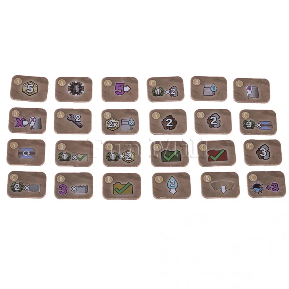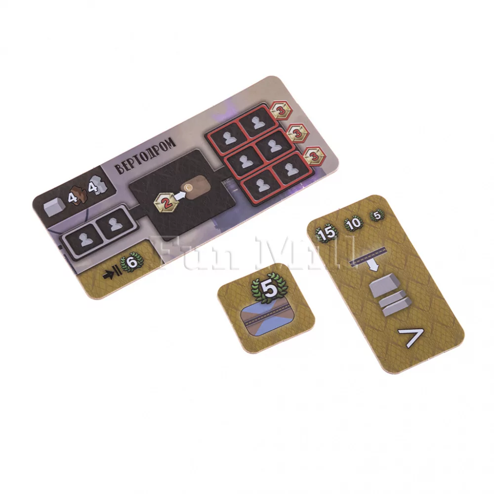 • Набор жетонов рабочих посёлков (размещаются в специальных ячейках на новом поле)