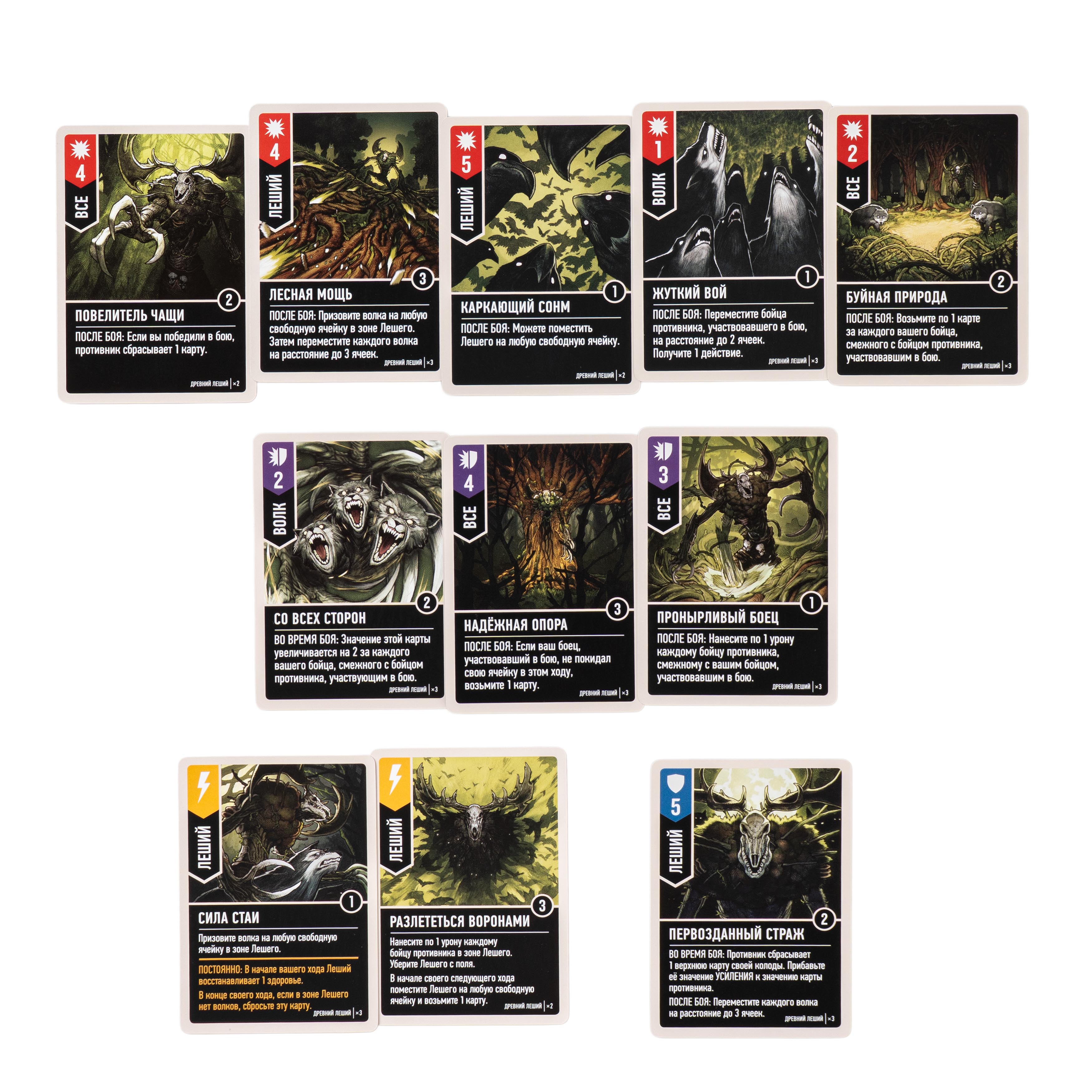 Древний Леший — хозяин леса, чья ярость нарастает. Его способность «Сердце леса» даёт +3 к последующим атакам в том же ходу. Он командует стаей волков, которые становятся сильнее вместе и могут возрождаться. Пока волки отвлекают врага, Леший восстанавливает силы для смертельного удара.