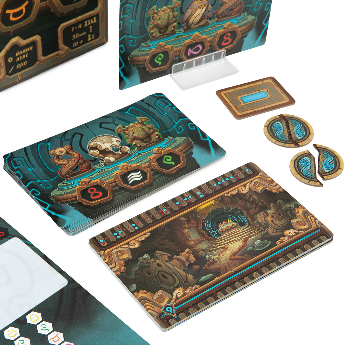 «Загадка стражей» – семейная логическая настольная игра, в которой вы отправляетесь на поиски сокровищ древнего храма, спрятанных за каменными стражами. Каждому участнику достаётся свой закрытый код – комбинация из трёх стражей, стоящих в определённом порядке, и именно эту последовательность предстоит восстановить с помощью подсказок и дедукции. Победителем станет тот, кто сумеет первым разгадать две разные комбинации и соберёт обе половины волшебного амулета, открывающего сокровищницу.